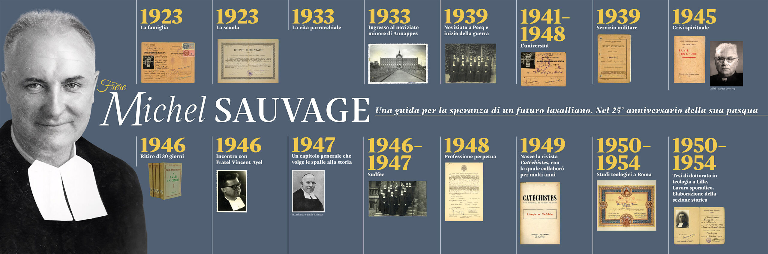 To mark the 25th anniversary of the passing of Brother Michel Sauvage, which took place on 28 March 2001, the Generalate of the Brothers of the Christian Schools is honouring his memory with a temporary exhibition that traces the most important stages of his life, not only as a tribute to his memory, but as an invitation to rediscover a living legacy. That of a man who knew how to ‘read God’ not only in the classroom, but wherever there was an educational need, training generations of mission leaders in Rome.