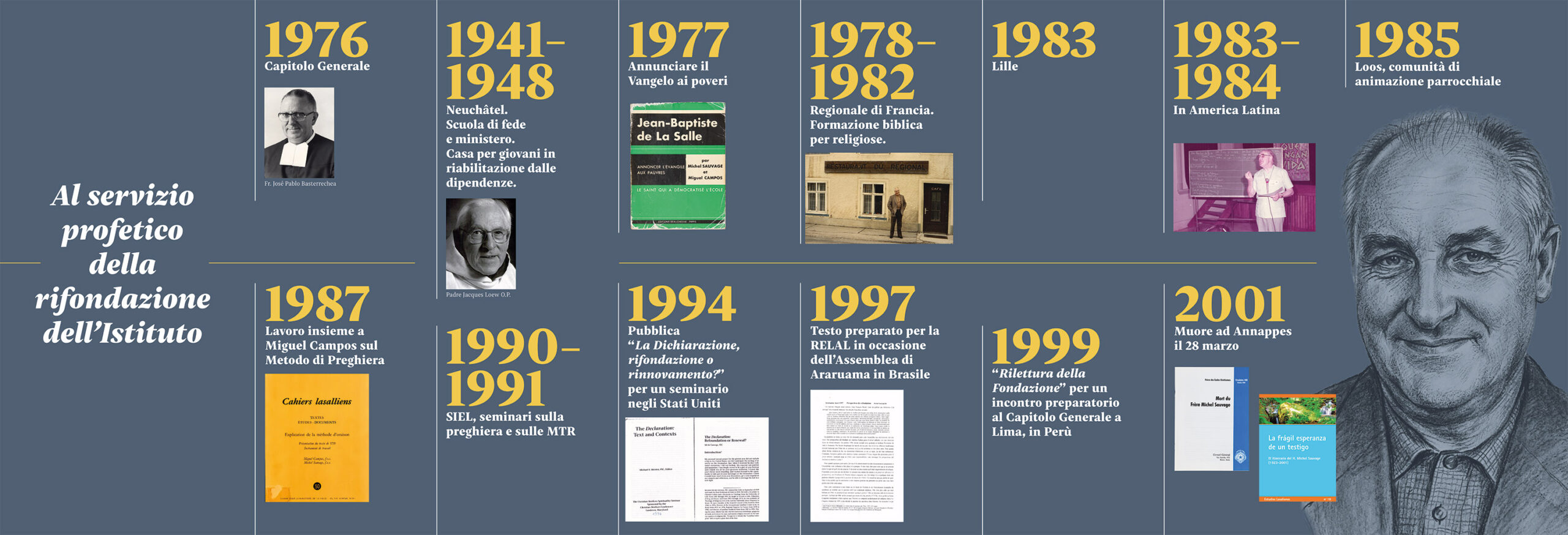 He was the theologian capable of reinterpreting the charism of Saint John Baptist de La Salle to respond to the challenges of modernity, stepping beyond the confines of the traditional school and performing a revolutionary act: just as De La Salle had left his social status to be with the poor teachers, so the modern Brother had to ‘step out’ of established educational institutions to reach out to the new forms of poverty.