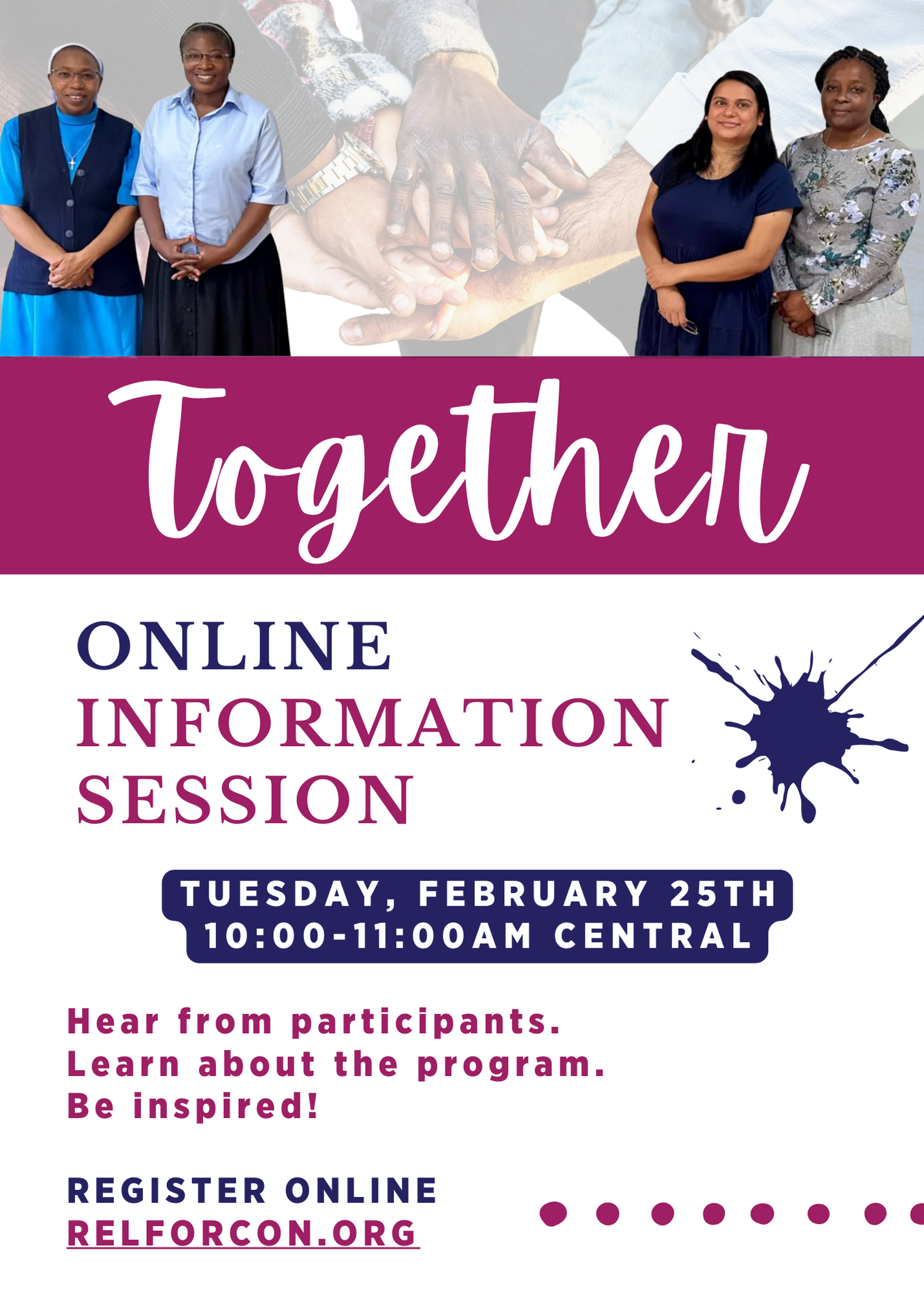 Image: Location: Zoom videoconference Date: Tuesday, February 25, 2025 - 10:00am to 11:00am https://relforcon.org/together-information-sessions