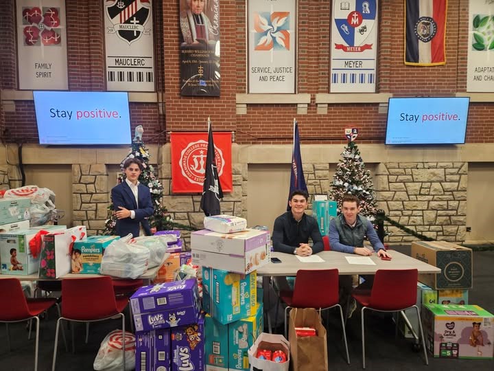 Members of the National Honor Society at Chaminade College Preparatory School in St. Louis, MO, held a diaper drive collecting nearly 230 packages of diapers for the St. Louis Area Diaper Bank.