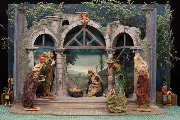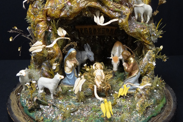 “Artists imagine the Holy Family’s shelter in many ways,” said Bridget Retzloff, assistant professor and visual resources librarian at the Marian Library. “Some scenes show a stable. Others show a cave or ancient ruins. Many artists use the architecture of their own communities. Some choose unexpected materials, like pottery or coconut shells. Each Nativity gives us a new way to see this moment and understand how people around the world tell the story.”