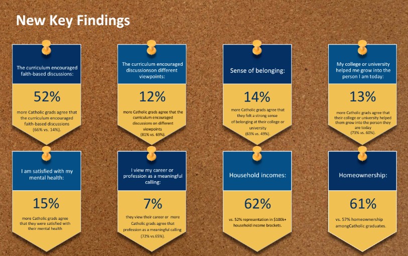 A national study, the Holistic Impact Report (HIR), found that graduates of Catholic colleges lead in purpose and belonging and report higher levels of mental health, financial stability, and dialogue across differences.