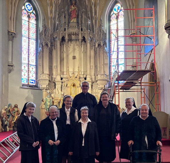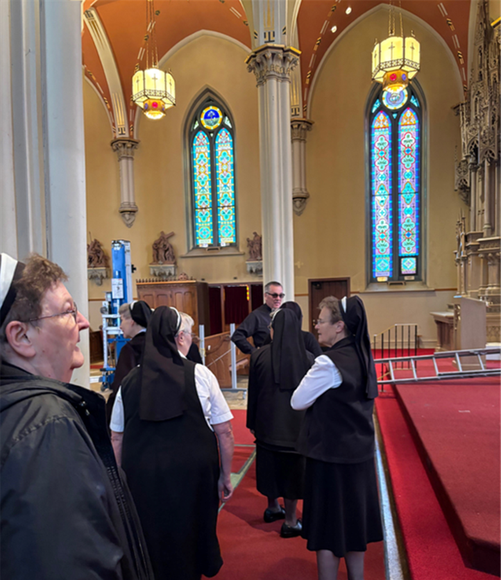 Father Doug offered it to us as he was not sure anyone else would value it as much as we might because of—as he pointed out—the images of several Sisters walking around outside of the church. The painting was done in 1974—but, what a treasure. It is now hanging in the Motherhouse hallway if you want to see it. We were all very grateful for the time spent seeing this history that has so much meaning for our Sisters who taught there, especially our Foundresses.